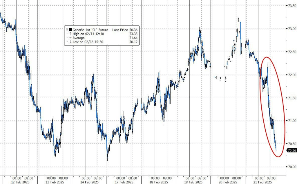 美油:WTI 4月原油期货收跌2.08美元,跌幅将近2.87%,报70.40美元/桶,本周累跌近0.44%。美油美股盘前小幅走高,随后加速下行,尾盘刷新日低跌超3%至70.30美元下方。